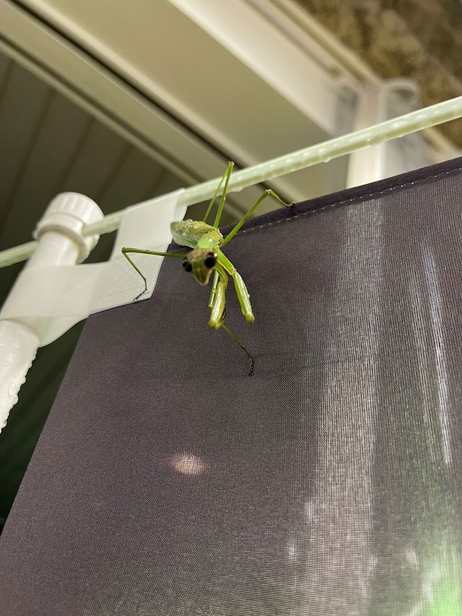 朝日お店オープン準備最中このかわいいカマキリ